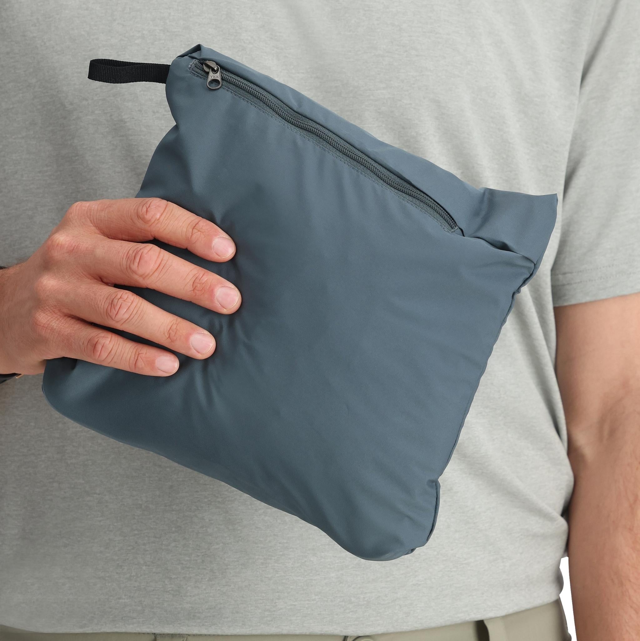 - Packable into wearer’s right hand pocket