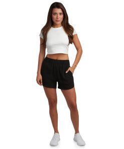 Stay cool, comfortable, and effortlessly stylish in these women’s pull-on shorts, crafted from ultra-soft, breathable fabric for all-day wear. Designed with a ribbed elastic waistband and comfort-stretch fit, they move with you, perfect for casual outings, travel, or lounging at home. With functional side and back pockets and a relaxed, flattering silhouette, these versatile shorts easily pair with your favorite tops for a polished look from day to night.